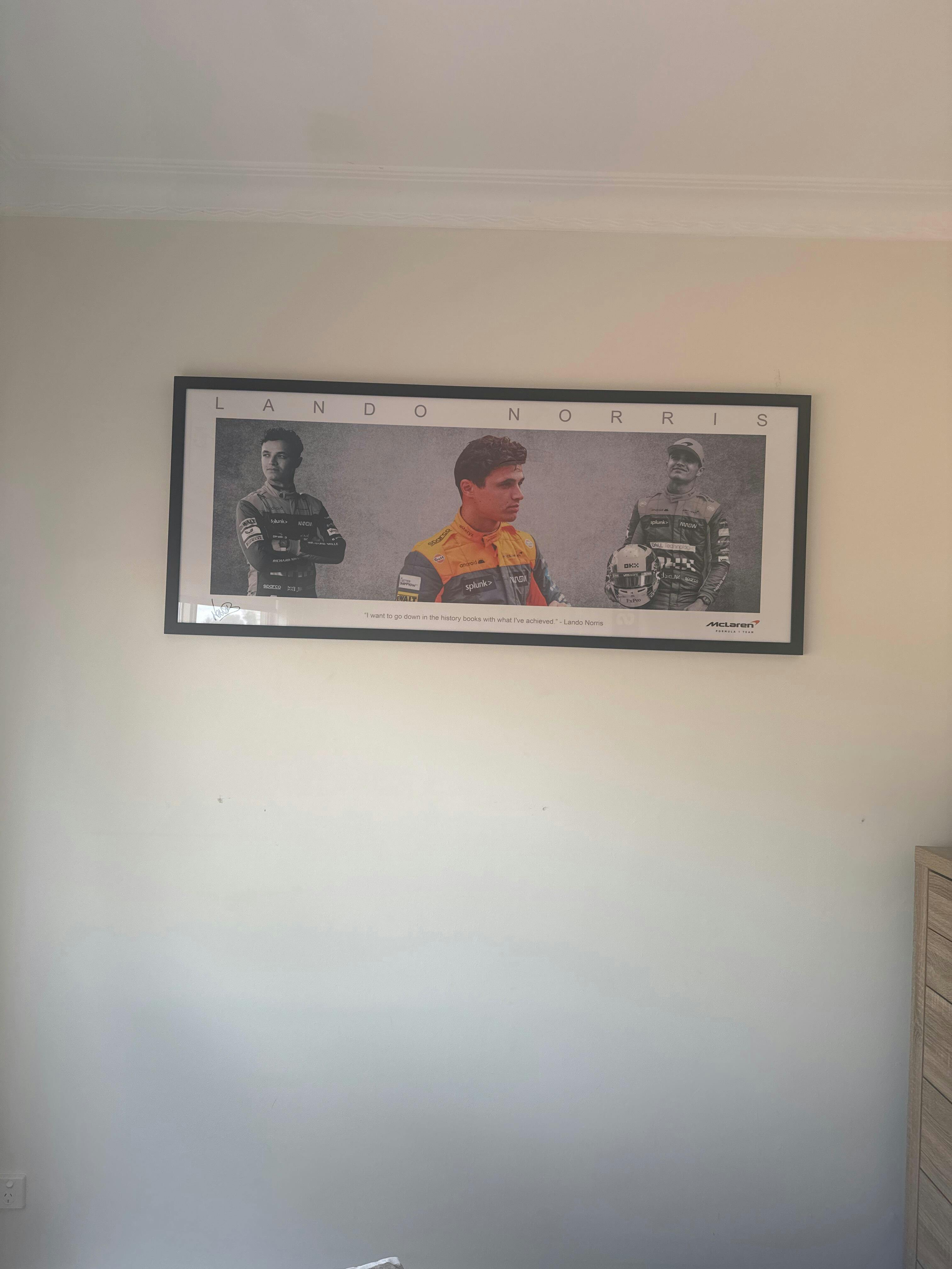 LANDO NORRIS PANORAMIC COLLAGE PRINT SIGNED FRAMED WINGS
